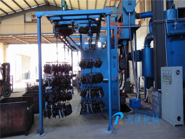 工件隨吊鏈可連續(xù)運行、步進運行或采用積放推式懸鏈輸送工件,使工件在裝卸料以及拋丸區(qū)分別處于停止?fàn)顟B(tài),實現(xiàn)定點裝卸和定點拋丸工序,根據(jù)工件不同可單點吊重50~2000kg,且生產(chǎn)率高,運行可靠,對各類易吊掛類零件的大批量清理,非常適用。如發(fā)動機缸體缸蓋、電機殼體、齒輪、摩托車發(fā)動機殼體、機車鉤尾框組件、轉(zhuǎn)向架組件、五金工具殼體、水泵等清理效果尤佳。通過拋丸清理,不但可以去除工件表面的銹蝕,清理掉結(jié)構(gòu)件上的焊渣,還可以消除工件的焊接應(yīng)力,提高工件的抗疲勞強度,增加工件噴漆時的漆膜附著力,并達(dá)到提高整個工件表面及內(nèi)在質(zhì)量的目的。是汽車、拖拉機、柴油機、電機、閥門等行業(yè)的理想選擇等。一般可按照用戶產(chǎn)品要求設(shè)計制作。