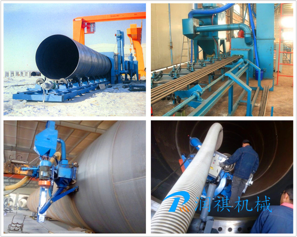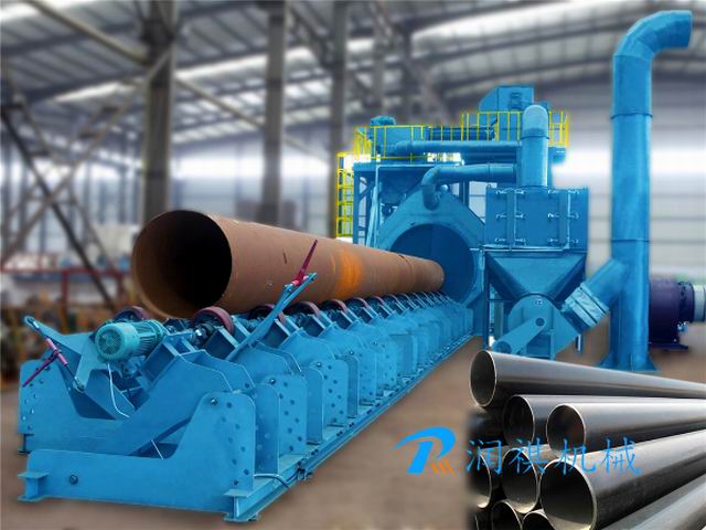 采用液壓馬達(dá)驅(qū)動,噴丸清理采用啟動馬達(dá)驅(qū)動。 我公司設(shè)計的有大管徑的內(nèi)壁拋丸機和直徑600mm以下的小型鋼管噴丸機等。該設(shè)備采用自動拋丸去除表面銹蝕,利用拋丸器拋出的高速